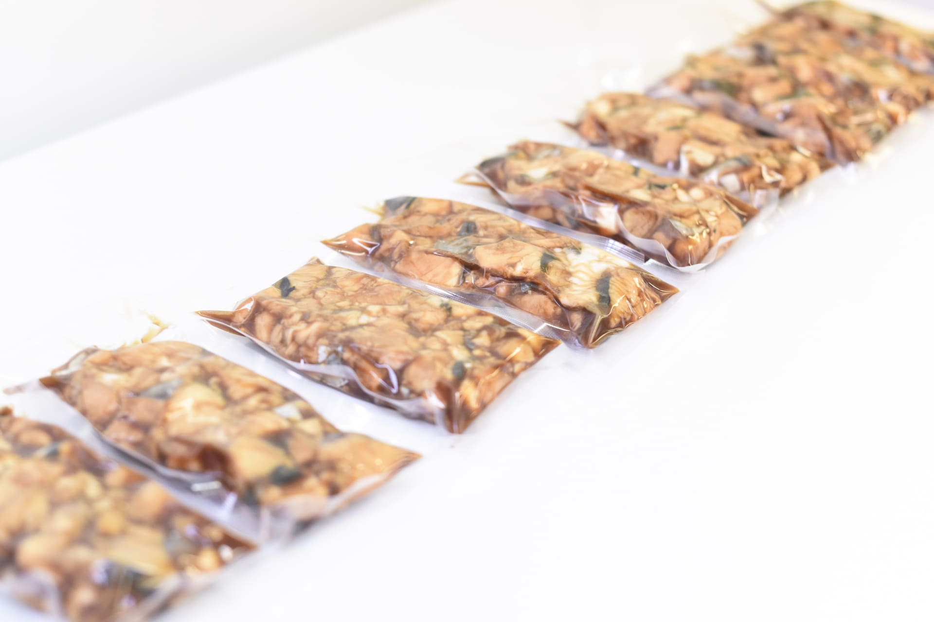 炊きあがってすぐの鰆の身をいただいた。ふっくらとしてやわらかな身、上品な味付け。素朴でほっとする味わいだ。ごはんに合わせると最高なのは容易に想像できる。「鰆の身はごはんとよく馴染みますし、火を入れても身がかたくならないんですよ。味付けする調味料の分量は秘密ですね(笑)。『鰆めし』は家庭料理ですから、それぞれの家庭で味は違うのですが、みんなで何度も試食しながらこの味に作りあげました」。冷凍して出荷される『鰆めしの素』は、自然解凍して炊きたてごはんと混ぜればできあがり。タマネギやキャベツと合わせれば酒のつまみにもぴったりとのこと。鯖科である鰆はDHAなどを多く含む青魚。『鰆めしの素』は、美味しさに加えて栄養価の面からも優れた食品だといえる。