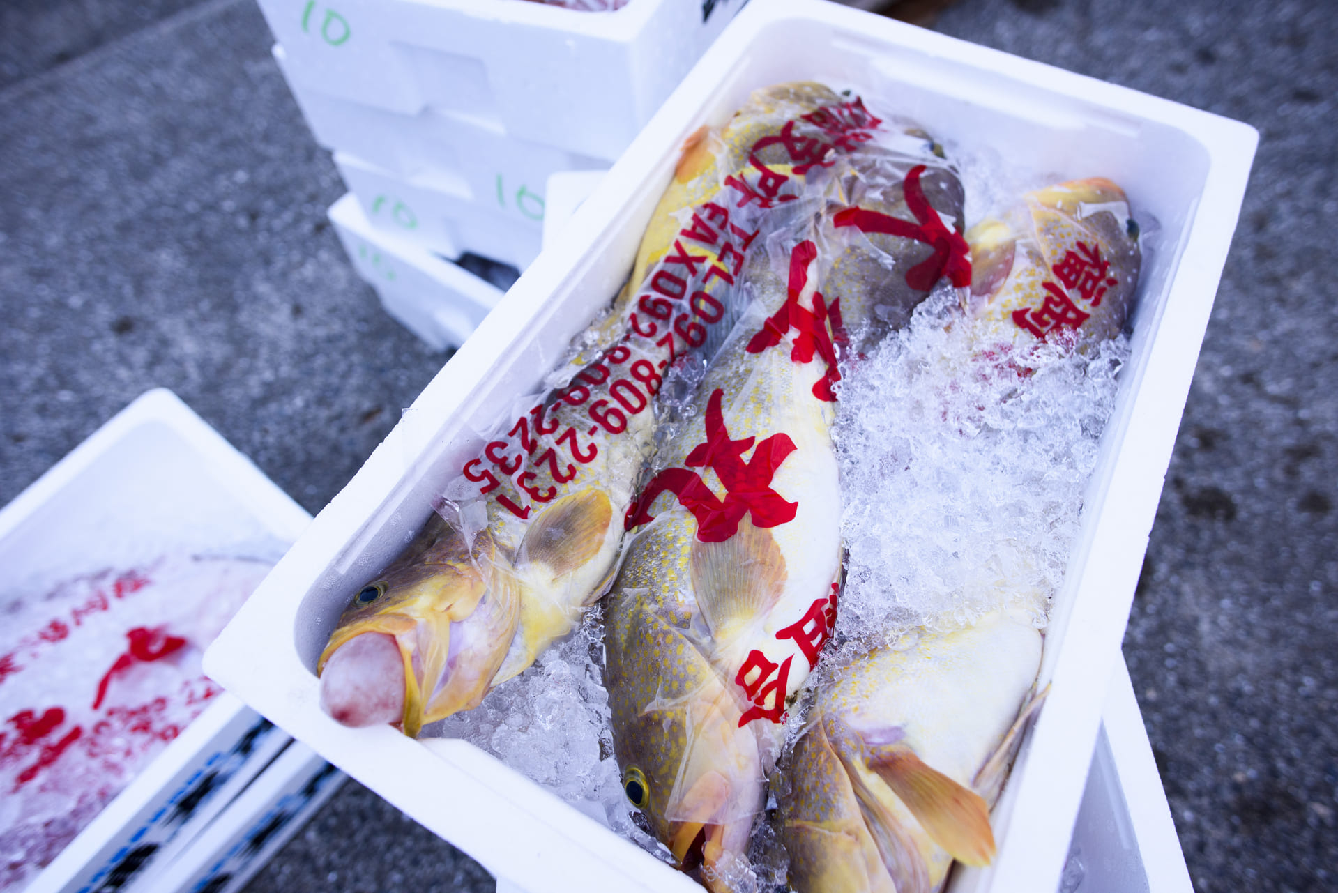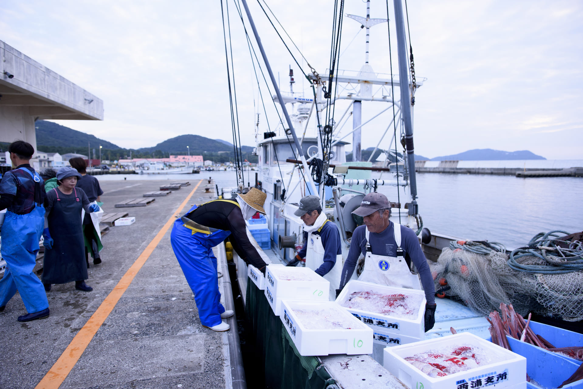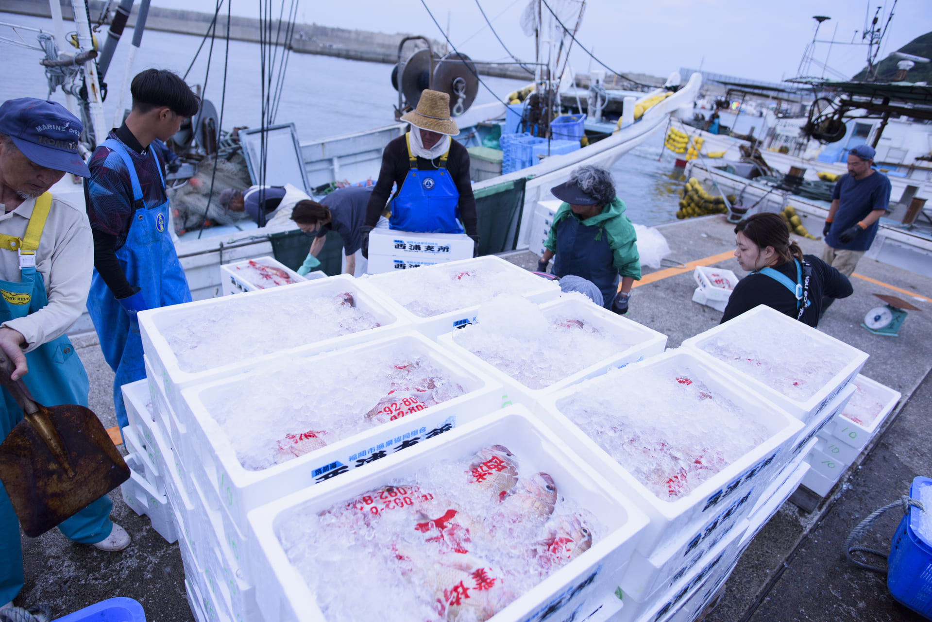 4月から12月までの漁期の間、マダイを中心にさまざまな魚種が獲れるという。春はサワラ、夏はキンメダイ、秋はカンパチやヤガラ、冬はアオハタやイサキなども網に入ってくる。柴田さん一家の『大生丸』では、鮮度を保つために獲れたての魚を船上で神経締めして氷と一緒に箱詰めしている。だから、私たちは近海で獲れた鮮度抜群の魚を味わうことができるのだ。